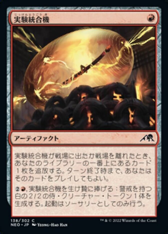| Rules | When Experimental Synthesizer enters or leaves the battlefield, exile the top card of your library. Until end of turn, you may play that card. , Sacrifice Experimental Synthesizer: Create a 2/2 white Samurai creature token with vigilance. Activate only as a sorcery. |