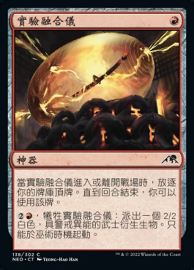 | Rules | When Experimental Synthesizer enters or leaves the battlefield, exile the top card of your library. Until end of turn, you may play that card. , Sacrifice Experimental Synthesizer: Create a 2/2 white Samurai creature token with vigilance. Activate only as a sorcery. |