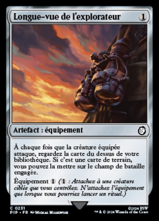 | Rules | Whenever equipped creature attacks, look at the top card of your library. If it's a land card, you may put it onto the battlefield tapped. Equip (: Attach to target creature you control. Equip only as a sorcery.) |