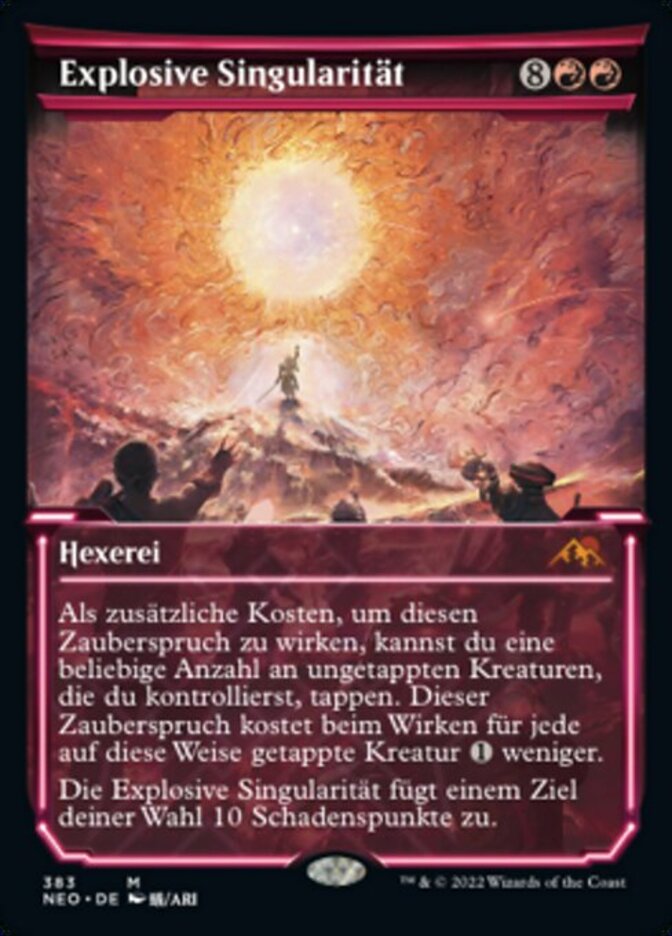 | Rules | As an additional cost to cast this spell, you may tap any number of untapped creatures you control. This spell costs less to cast for each creature tapped this way. Explosive Singularity deals 10 damage to any target. |