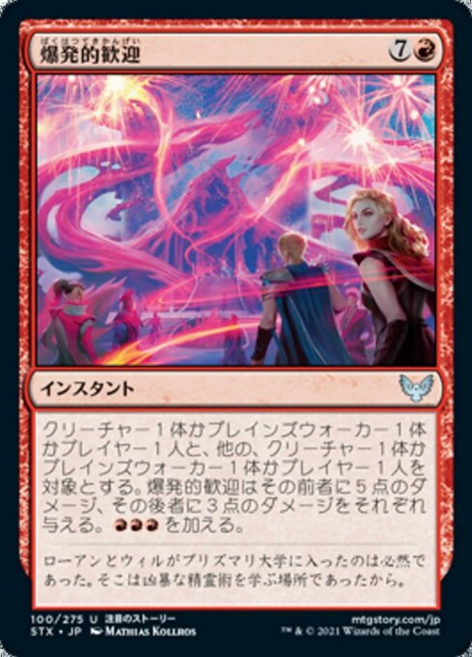 | Rules | Explosive Welcome deals 5 damage to any target and 3 damage to any other target. Add . |
