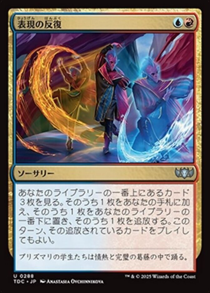 | Rules | Look at the top three cards of your library. Put one of them into your hand, put one of them on the bottom of your library, and exile one of them. You may play the exiled card this turn. |