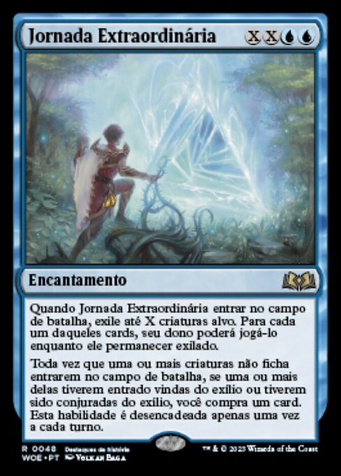 | Rules | When Extraordinary Journey enters the battlefield, exile up to X target creatures. For each of those cards, its owner may play it for as long as it remains exiled. Whenever one or more nontoken creatures enter the battlefield, if one or more of them entered from exile or was cast from exile, you draw a card. This ability triggers only once each turn. |