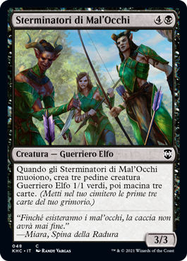 | Rules | When Eyeblight Cullers dies, create three 1/1 green Elf Warrior creature tokens, then mill three cards. (Put the top three cards of your library into your graveyard.) |