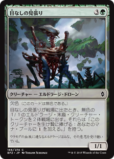 | Rules | Devoid (This card has no color.) When Eyeless Watcher enters the battlefield, create two 1/1 colorless Eldrazi Scion creature tokens. They have "Sacrifice this creature: Add ." |