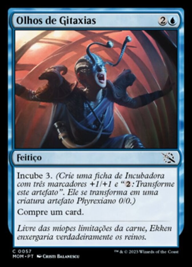 | Rules | Incubate 3. (Create an Incubator token with three +1/+1 counters on it and ": Transform this artifact." It transforms into a 0/0 Phyrexian artifact creature.) Draw a card. |