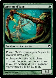 | Rules | Reach (This creature can block creatures with flying.) Whenever Ezuri's Archers blocks a creature with flying, Ezuri's Archers gets +3/+0 until end of turn. |