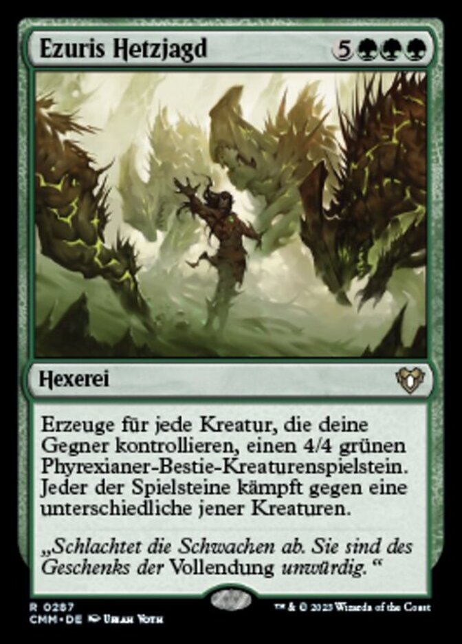 | Rules | For each creature your opponents control, create a 4/4 green Phyrexian Beast creature token. Each of those Beasts fights a different one of those creatures. |