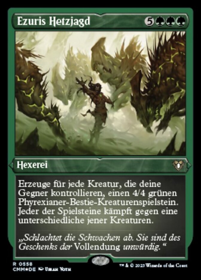 | Rules | For each creature your opponents control, create a 4/4 green Phyrexian Beast creature token. Each of those Beasts fights a different one of those creatures. |