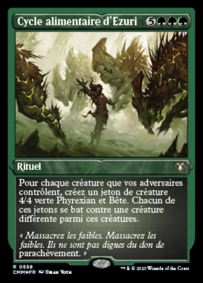 | Rules | For each creature your opponents control, create a 4/4 green Phyrexian Beast creature token. Each of those Beasts fights a different one of those creatures. |