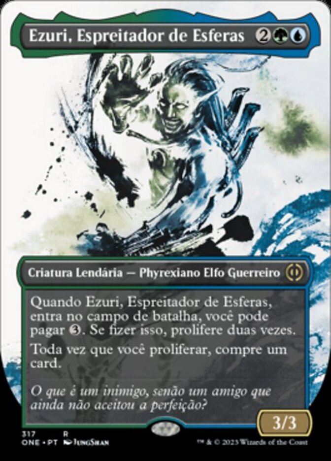 | Rules | When Ezuri, Stalker of Spheres enters the battlefield, you may pay . If you do, proliferate twice. Whenever you proliferate, draw a card. |