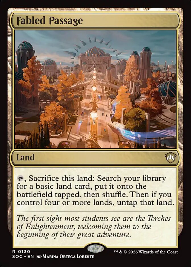 | Rules | , Sacrifice Fabled Passage: Search your library for a basic land card, put it onto the battlefield tapped, then shuffle. Then if you control four or more lands, untap that land. |