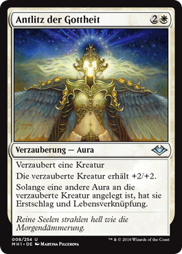 | Rules | Enchant creature Enchanted creature gets +2/+2. As long as another Aura is attached to enchanted creature, it has first strike and lifelink. |