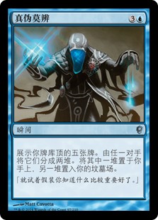 | Rules | Reveal the top five cards of your library. An opponent separates those cards into two piles. Put one pile into your hand and the other into your graveyard. |