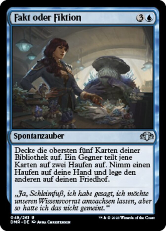 | Rules | Reveal the top five cards of your library. An opponent separates those cards into two piles. Put one pile into your hand and the other into your graveyard. |
