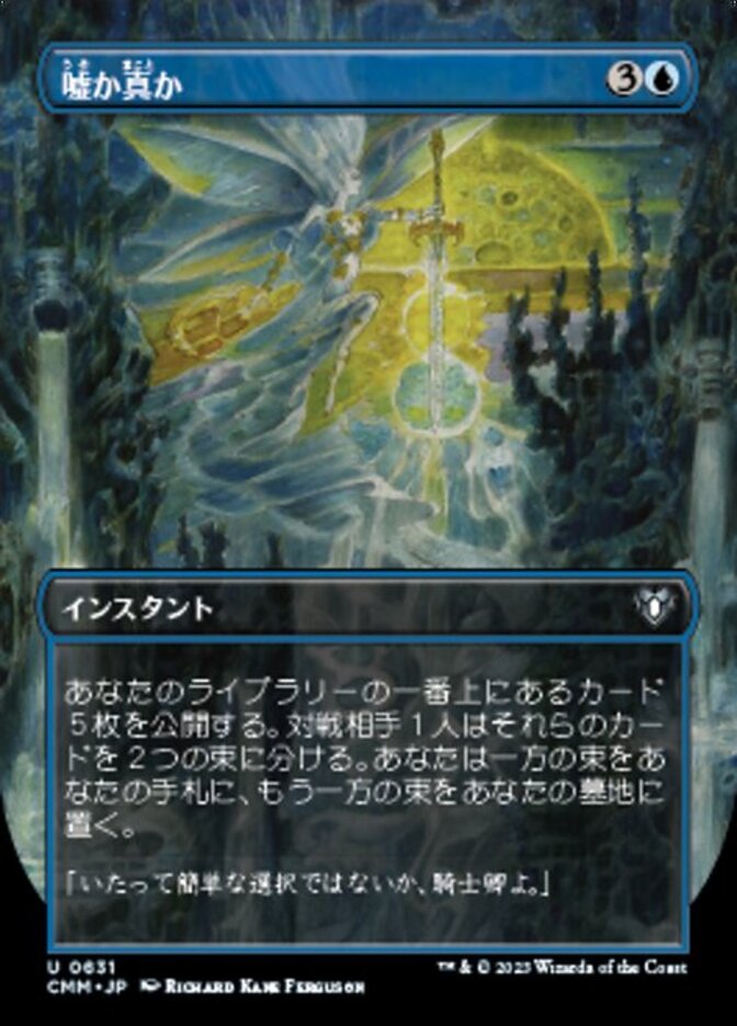 | Rules | Reveal the top five cards of your library. An opponent separates those cards into two piles. Put one pile into your hand and the other into your graveyard. |