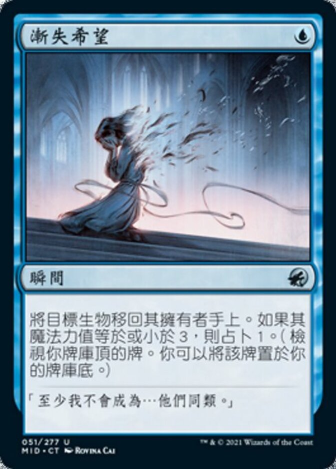 | Rules | Return target creature to its owner's hand. If its mana value was 3 or less, scry 1. (Look at the top card of your library. You may put that card on the bottom of your library.) |