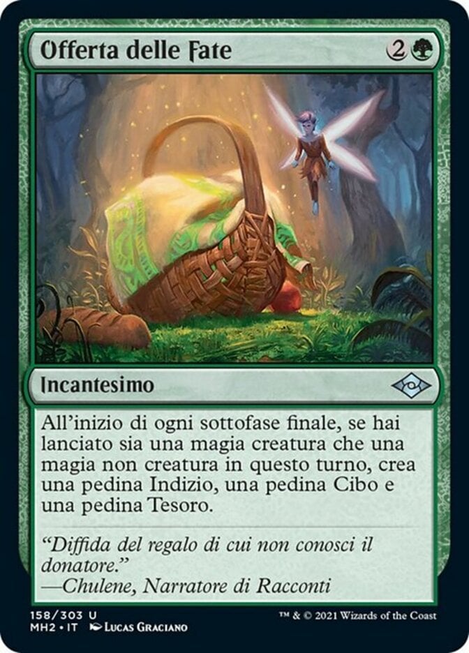 | Rules | At the beginning of each end step, if you've cast both a creature spell and a noncreature spell this turn, create a Clue token, a Food token, and a Treasure token. |