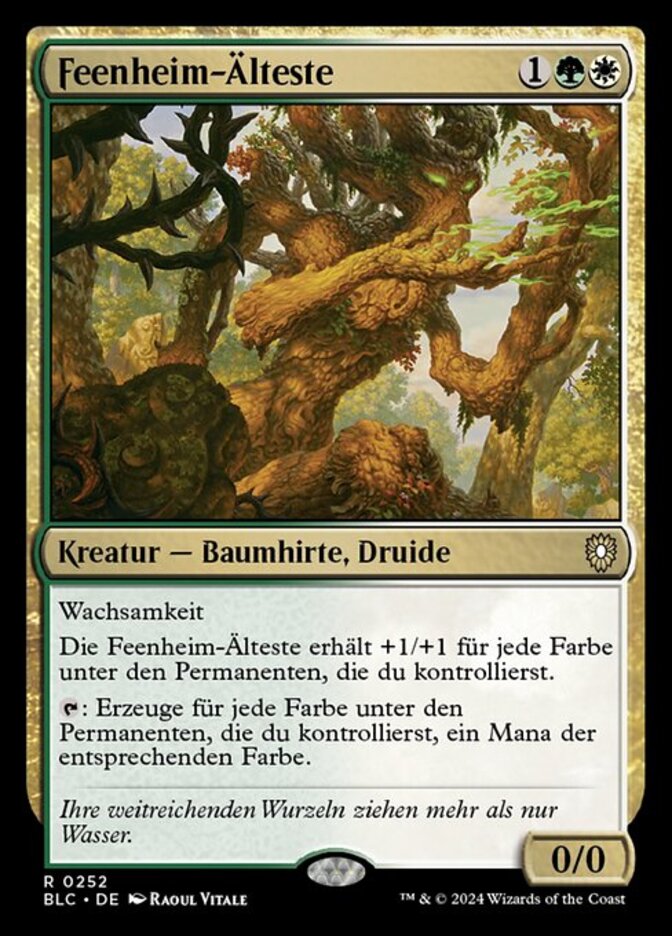 | Rules | Vigilance Faeburrow Elder gets +1/+1 for each color among permanents you control. : For each color among permanents you control, add one mana of that color. |