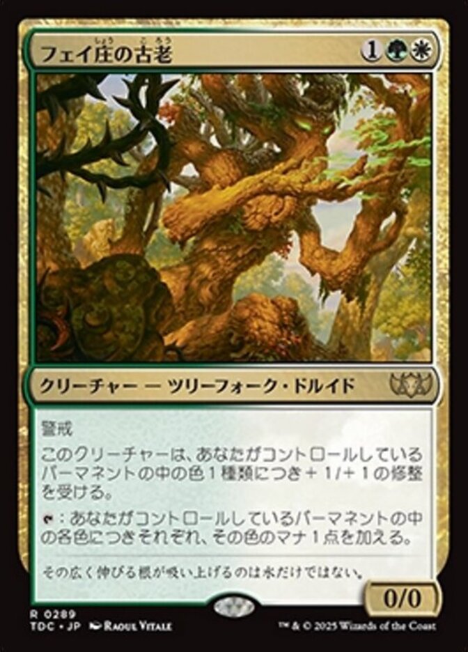 | Rules | Vigilance Faeburrow Elder gets +1/+1 for each color among permanents you control. : For each color among permanents you control, add one mana of that color. |