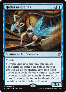 | Rules | Flying Whenever a nontoken creature enters the battlefield under an opponent's control, create a token that's a copy of that creature except it's an artifact in addition to its other types. Then exile all other tokens created with Faerie Artisans. |