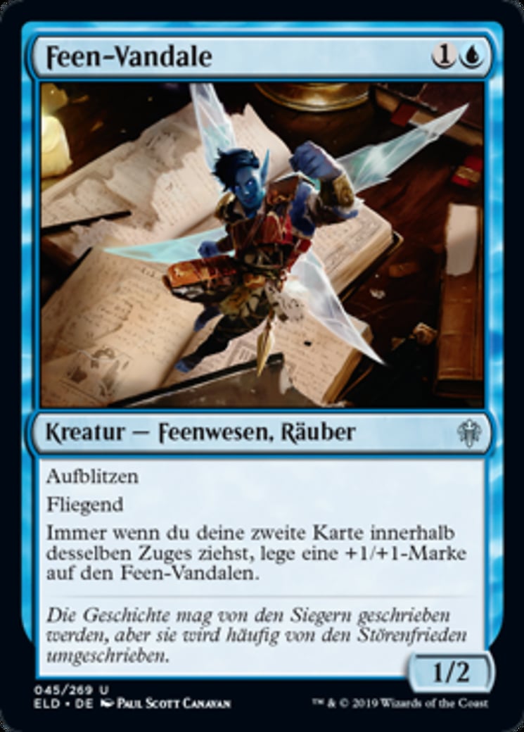 | Rules | Flash Flying Whenever you draw your second card each turn, put a +1/+1 counter on Faerie Vandal. |