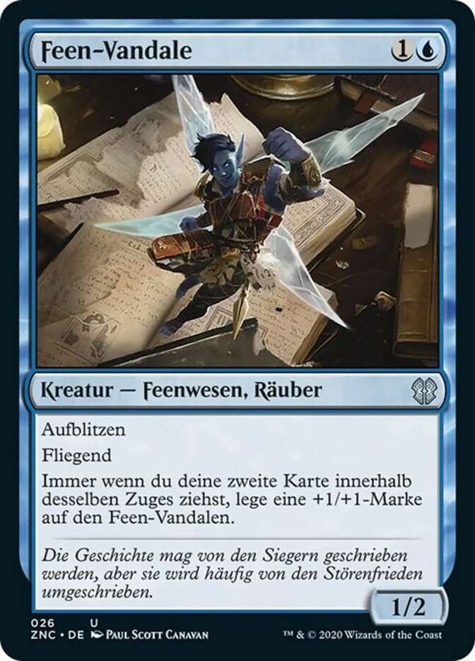 | Rules | Flash Flying Whenever you draw your second card each turn, put a +1/+1 counter on Faerie Vandal. |