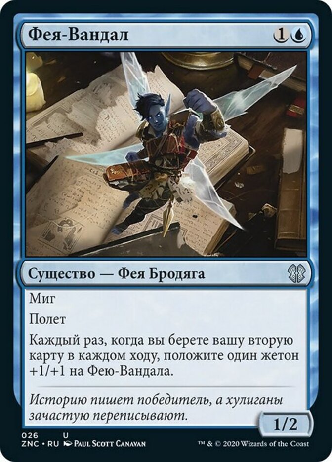 | Rules | Flash Flying Whenever you draw your second card each turn, put a +1/+1 counter on Faerie Vandal. |