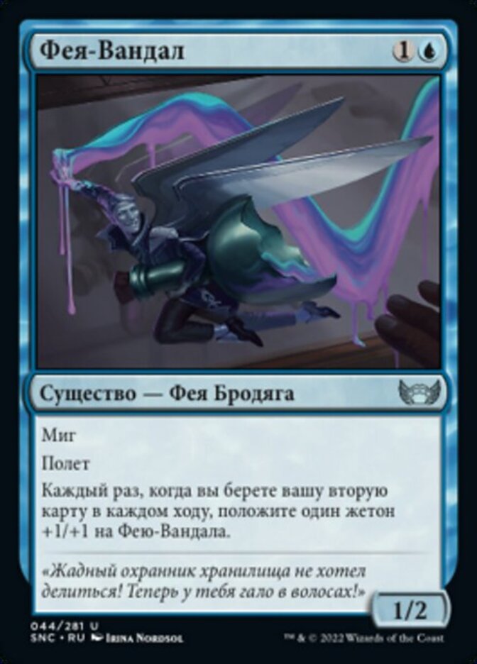 | Rules | Flash Flying Whenever you draw your second card each turn, put a +1/+1 counter on Faerie Vandal. |