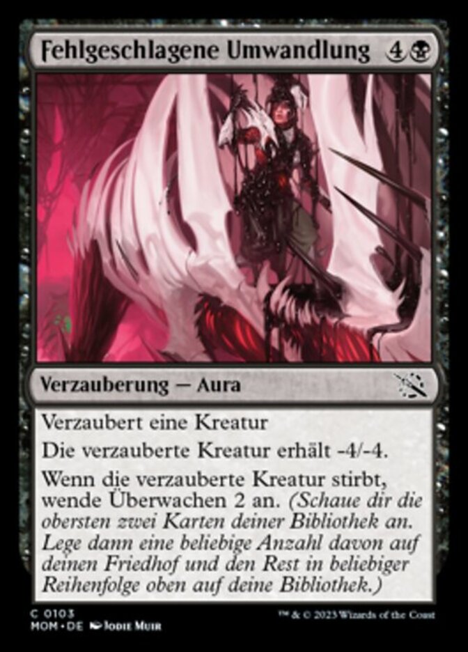 | Rules | Enchant creature Enchanted creature gets -4/-4. When enchanted creature dies, surveil 2. (Look at the top two cards of your library, then put any number of them into your graveyard and the rest on top of your library in any order.) |