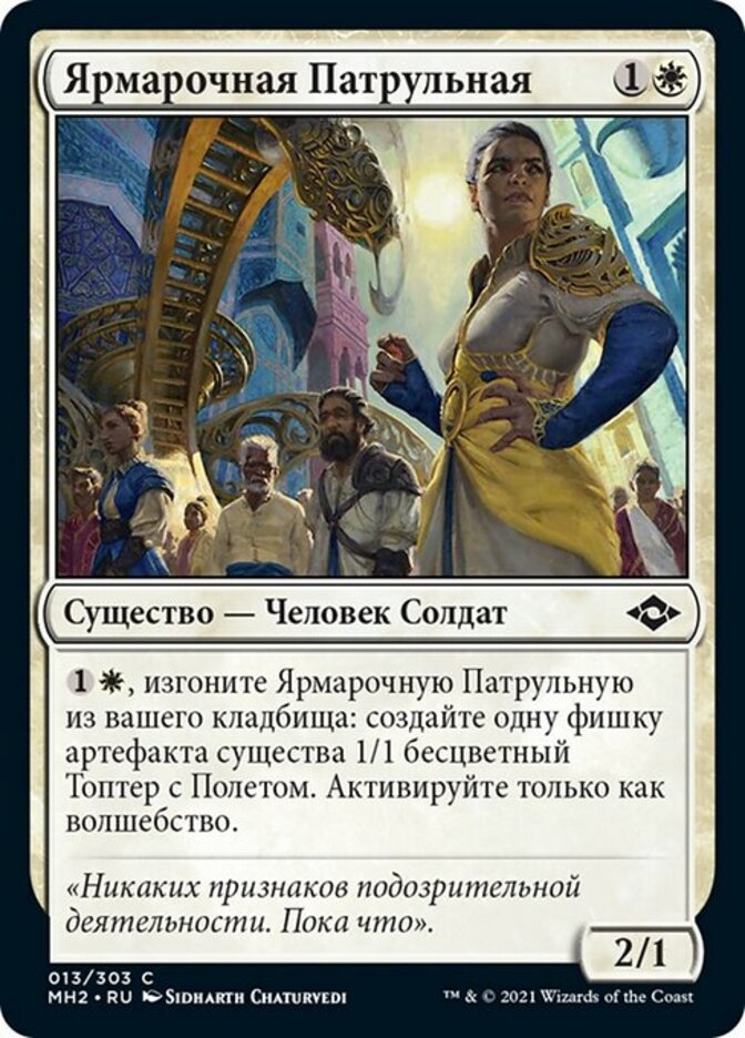 | Rules | , Exile Fairgrounds Patrol from your graveyard: Create a 1/1 colorless Thopter artifact creature token with flying. Activate only as a sorcery. |