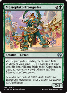 | Rules | At the beginning of each end step, if a +1/+1 counter was put on a permanent under your control this turn, put a +1/+1 counter on Fairgrounds Trumpeter. |
