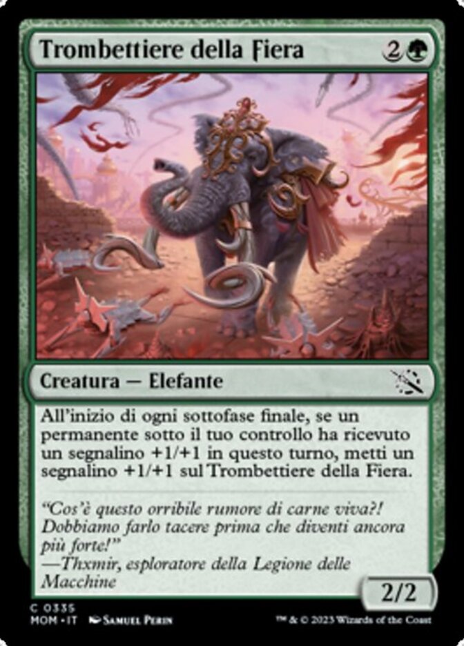 | Rules | At the beginning of each end step, if a +1/+1 counter was put on a permanent under your control this turn, put a +1/+1 counter on Fairgrounds Trumpeter. |