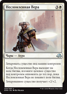 | Rules | Enchant creature you control When Faith Unbroken enters the battlefield, exile target creature an opponent controls until Faith Unbroken leaves the battlefield. Enchanted creature gets +2/+2. |