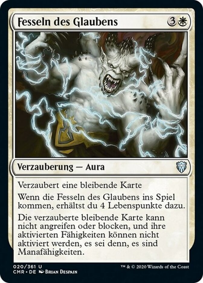 | Rules | Enchant permanent When Faith's Fetters enters the battlefield, you gain 4 life. Enchanted permanent can't attack or block, and its activated abilities can't be activated unless they're mana abilities. |