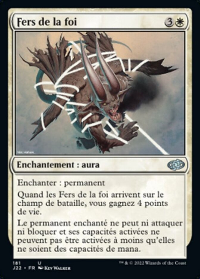 | Rules | Enchant permanent When Faith's Fetters enters the battlefield, you gain 4 life. Enchanted permanent can't attack or block, and its activated abilities can't be activated unless they're mana abilities. |