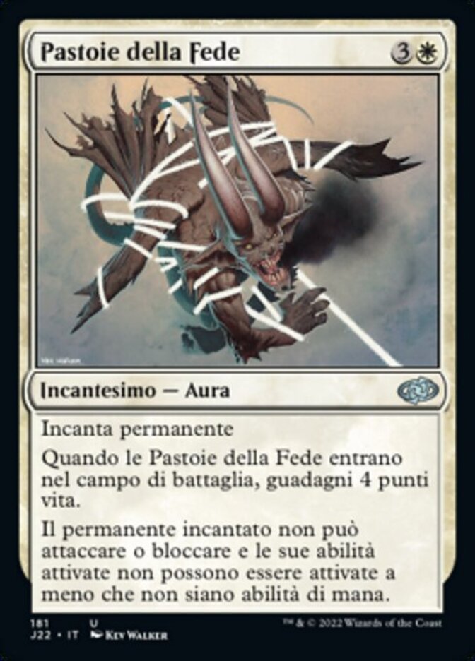 | Rules | Enchant permanent When Faith's Fetters enters the battlefield, you gain 4 life. Enchanted permanent can't attack or block, and its activated abilities can't be activated unless they're mana abilities. |