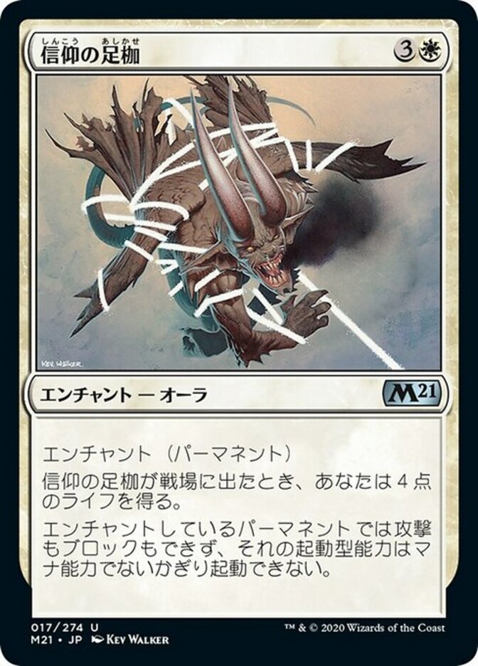 | Rules | Enchant permanent When Faith's Fetters enters the battlefield, you gain 4 life. Enchanted permanent can't attack or block, and its activated abilities can't be activated unless they're mana abilities. |