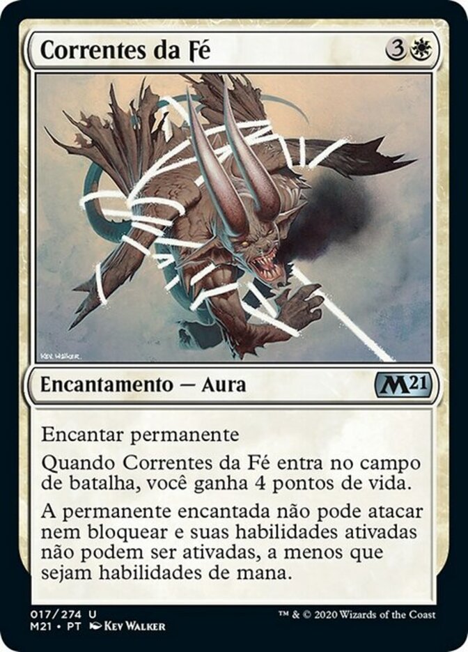 | Rules | Enchant permanent When Faith's Fetters enters the battlefield, you gain 4 life. Enchanted permanent can't attack or block, and its activated abilities can't be activated unless they're mana abilities. |