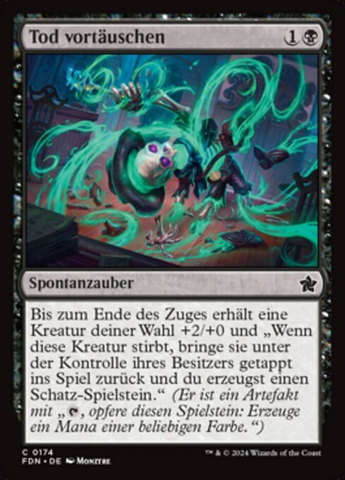 | Rules | Until end of turn, target creature gets +2/+0 and gains "When this creature dies, return it to the battlefield tapped under its owner's control and you create a Treasure token." (It's an artifact with ", Sacrifice this artifact: Add one mana of any color.") |