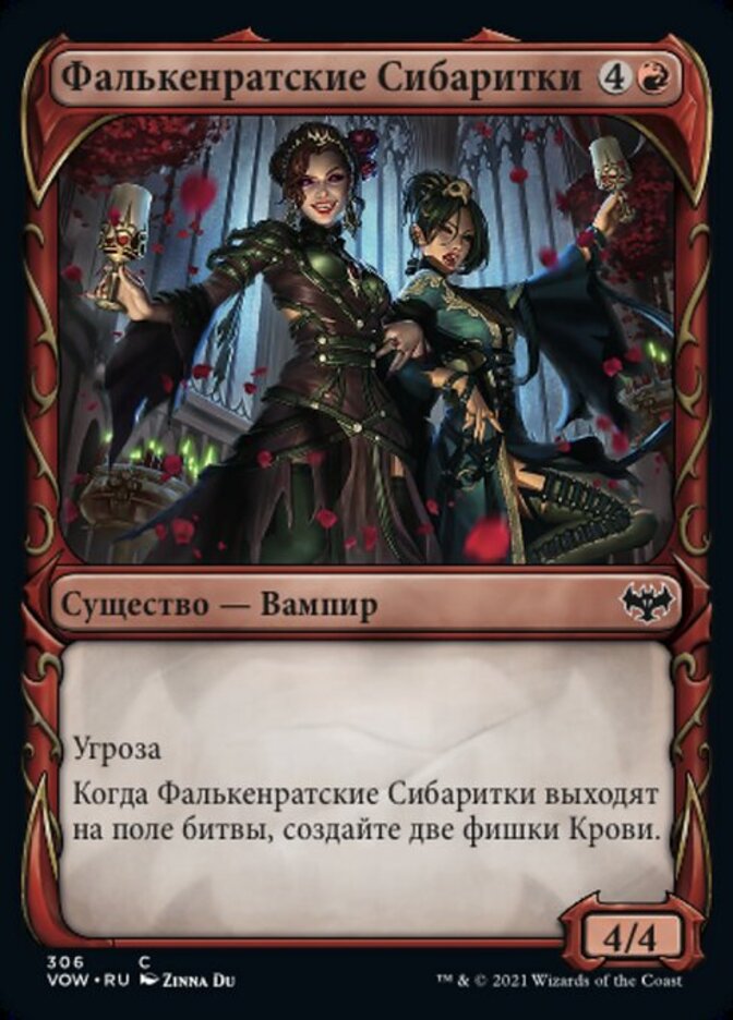 | Rules | Menace (This creature can't be blocked except by two or more creatures.) When Falkenrath Celebrants enters the battlefield, create two Blood tokens. (They're artifacts with ", , Discard a card, Sacrifice this artifact: Draw a card.") |