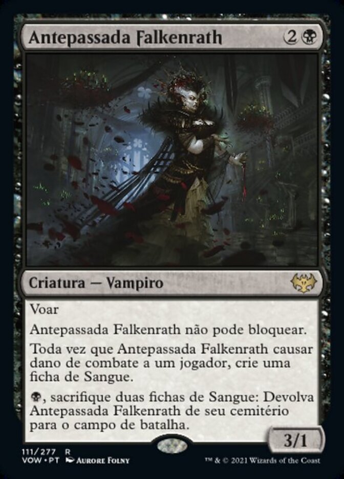 | Rules | Flying Falkenrath Forebear can't block. Whenever Falkenrath Forebear deals combat damage to a player, create a Blood token. , Sacrifice two Blood tokens: Return Falkenrath Forebear from your graveyard to the battlefield. |