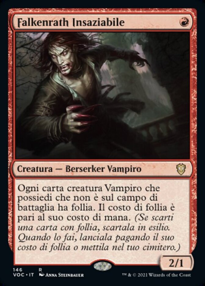 | Rules | Each Vampire creature card you own that isn't on the battlefield has madness. The madness cost is equal to its mana cost. (If you discard a card with madness, discard it into exile. When you do, cast it for its madness cost or put it into your graveyard.) |