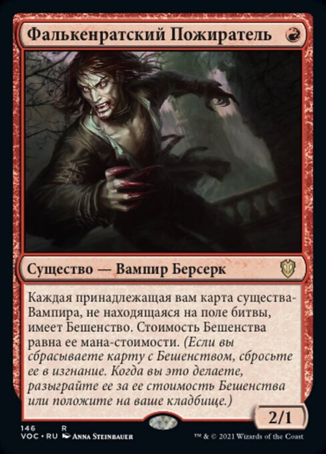 | Rules | Each Vampire creature card you own that isn't on the battlefield has madness. The madness cost is equal to its mana cost. (If you discard a card with madness, discard it into exile. When you do, cast it for its madness cost or put it into your graveyard.) |