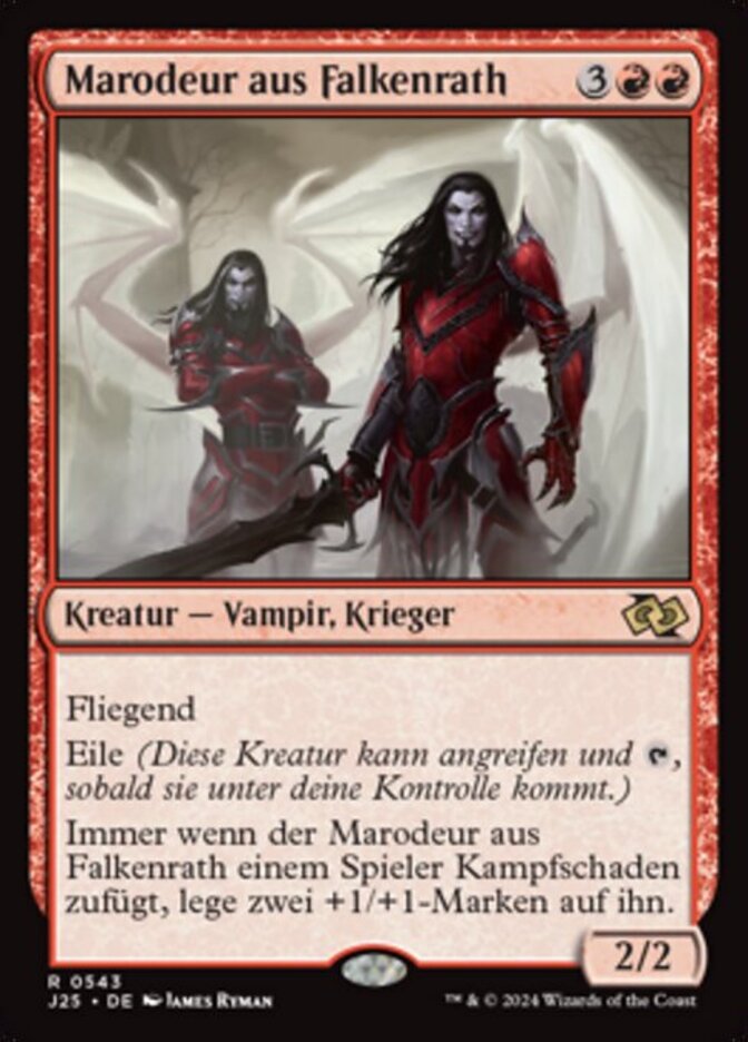 | Rules | Flying, haste Whenever Falkenrath Marauders deals combat damage to a player, put two +1/+1 counters on it. |
