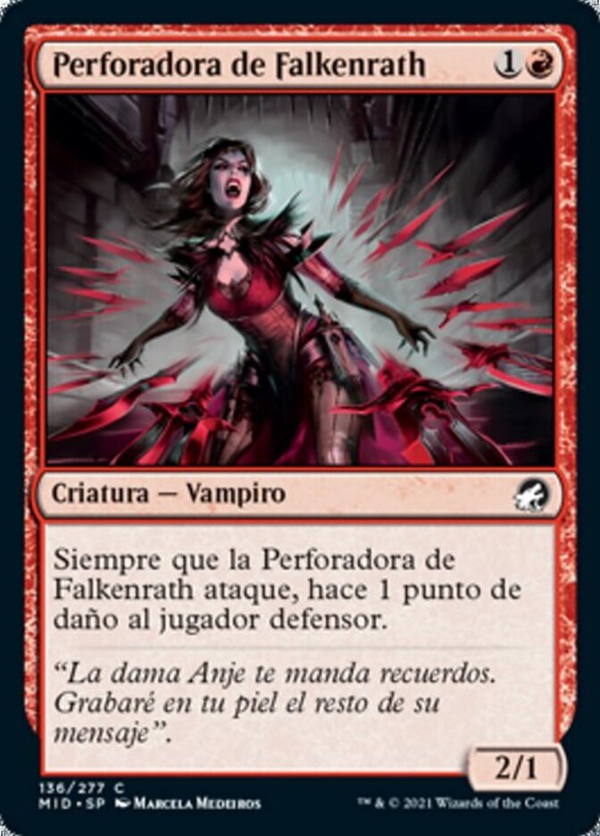 | Rules | Whenever Falkenrath Perforator attacks, it deals 1 damage to defending player. |