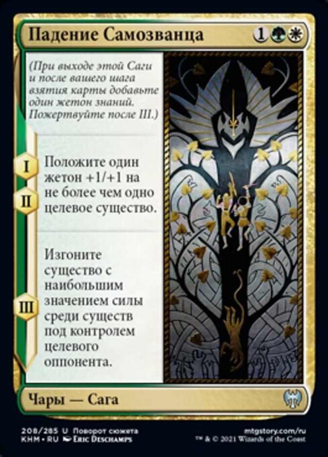 | Rules | (As this Saga enters and after your draw step, add a lore counter. Sacrifice after III.) I, II — Put a +1/+1 counter on up to one target creature. III — Exile a creature with the greatest power among creatures target opponent controls. |