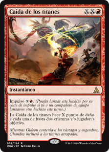 | Rules | Surge (You may cast this spell for its surge cost if you or a teammate has cast another spell this turn.) Fall of the Titans deals X damage to each of up to two targets. |