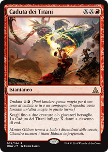 | Rules | Surge (You may cast this spell for its surge cost if you or a teammate has cast another spell this turn.) Fall of the Titans deals X damage to each of up to two targets. |