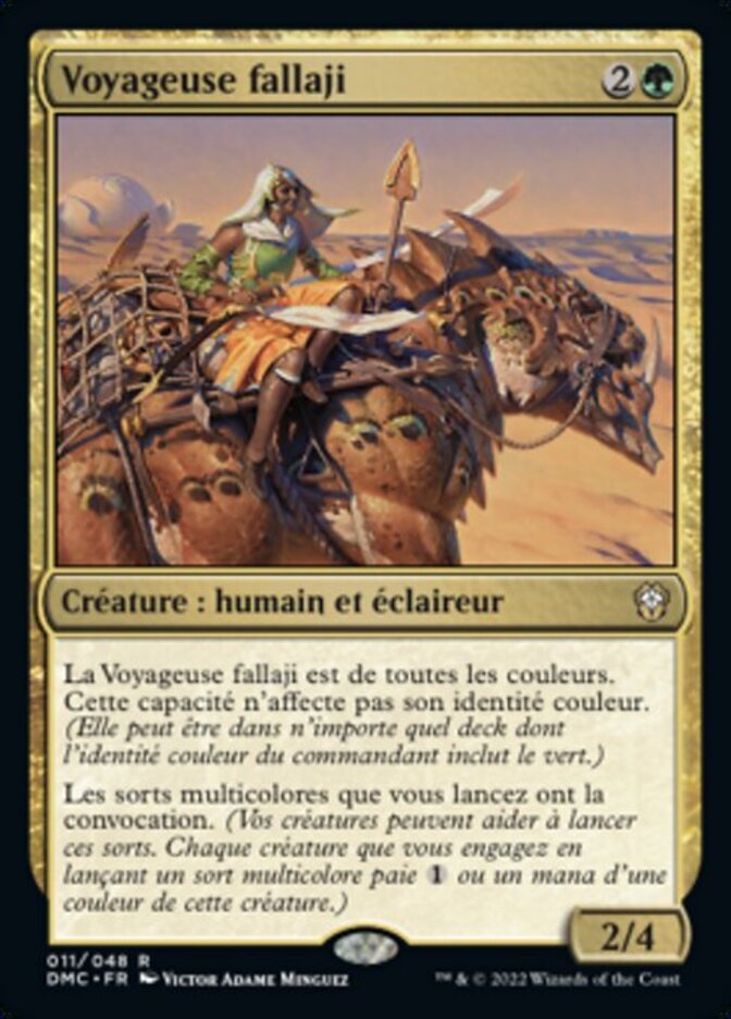 | Rules | Fallaji Wayfarer is all colors. This ability doesn't affect its color identity. (It can be in any deck whose commander's color identity includes green.) Multicolored spells you cast have convoke. (Your creatures can help cast those spells. Each creature you tap while casting a multicolored spell pays for or one mana of a color that creature is.) |